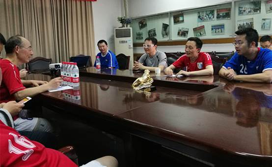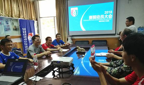 为积极应战学校组织的教职工足球比赛,2018年4月4日下午5点,物理学院教工足球队赛前动员大会在九里高温高压研究所准时召开,出席本次大会的有物理学院副院长李相强、物理学院工会主席刘静沂老师、足球队队长张淼老师以及其他教职工。