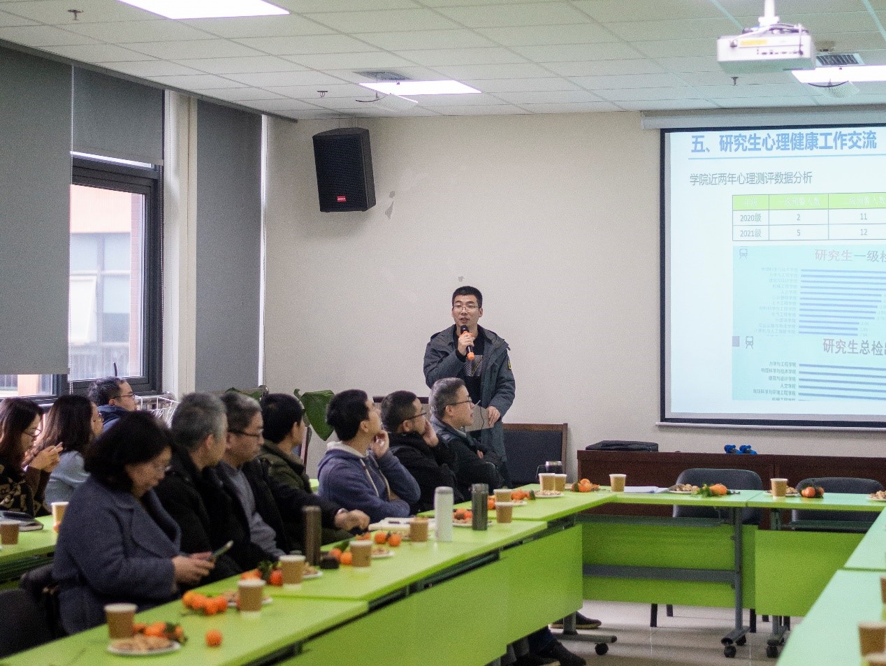 随后,院团委书记门满洲就研究生心理情况进行交流并对2022届毕业生目前就业去向作了通报。他强调,研究生导师对于研究生心理健康问题应该做到高度重视,加强管理,及时发现,规范处置。