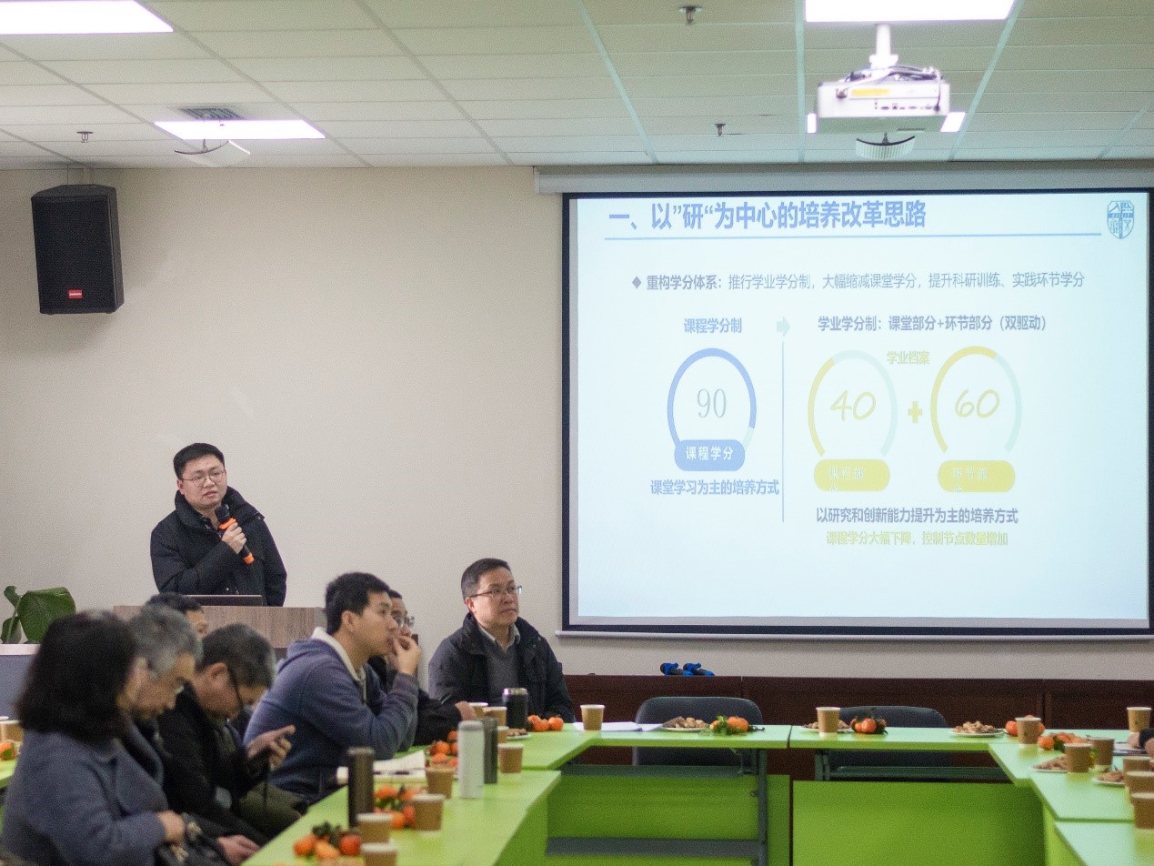 接着,院长助理周涛汇报了学校研究生以“研”为中心的培养改革思路,并就研究生培养相关的关键内容作了解读,对研究生工作的注意事项做了说明。他指出,导师是培养质量第一责任人,要把培养人放到第一位,既要做学术训导人,更要做人生领路人,言传身教引导研究生恪守学术道德规范,增强社会责任感。