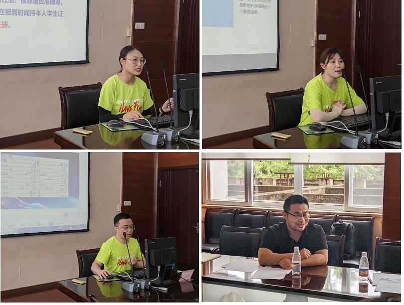 辅导员龚高秦带领大家对本科生相关管理规章制度进行了学习。她从学籍管理、教学服务、考试管理、纪律处分、住宿管理等方面,结合学生工作日常及常见问题进行了梳理解释,帮助全体辅导员对学生工作管理制度有了更加深入的了解。辅导员周玲以“从班级升学率差异化看班风学风建设”为题分享了她在营造优良班风学风方面的经验。她从不同班级的升学深造率等真实数据出发,提出加强班干部作用发挥、科研竞赛与学生活动、职业生涯规划等方面的建议。辅导员雍腾则结合日常新闻稿写作实例,分享了他在新闻稿写作技巧与文字写作规范等方面的经验。在辅导员交流环节结束后,应用物理系党支部书记刘其军表示,要进一步加强专业系与学生工作队伍的交流研讨,实现专业课教师与辅导员的互相补位与沟通协作,共同引导学生成长成才。