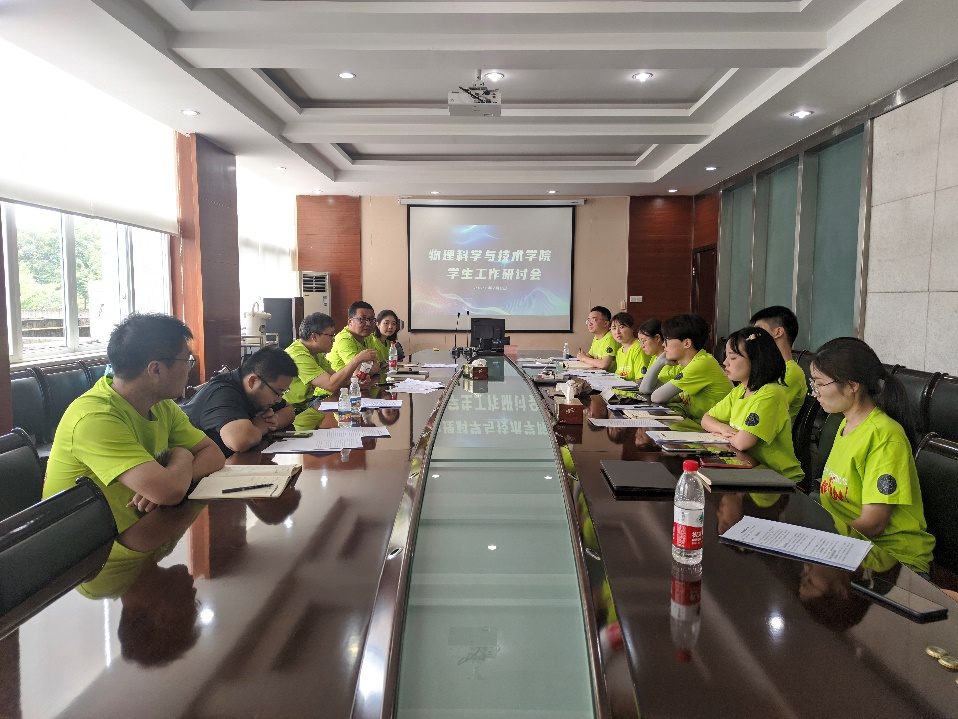 为进一步凝练学生工作成果,加强学生工作干部优势互补与经验交流,争创一流学生工作局面,以优异成绩迎接党的二十大和学校第十五次党代会,7月2日,威尼斯欢乐娱人城1099在峨眉校区一会议室组织召开学生工作研讨交流会。学院党委书记刘玉,党委副书记兼副院长郭剑,党委委员、应用物理系党支部书记刘其军,党委委员、院长助理陈曦,院长助理、应用物理系主任倪宇翔及全体辅导员参加会议。